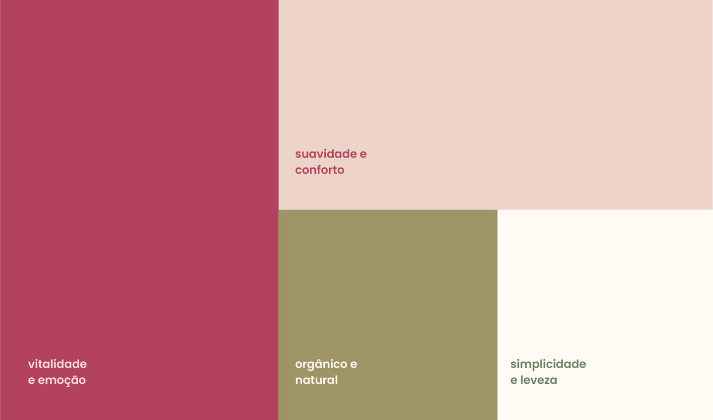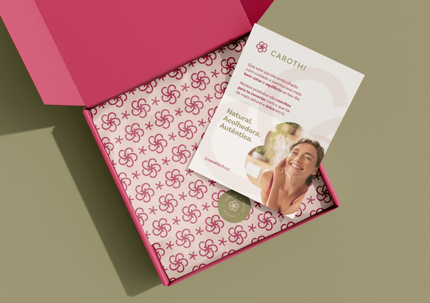Ela se posiciona como um elo entre a mulher moderna, que busca equilíbrio em meio à rotina, e a pureza dos elementos naturais. Suas cores vivas e orgânicas, seu tom de voz acolhedor e cada detalhe da identidade visual, foram cuidadosamente pensados para refletir essa promessa: um cuidado verdadeiro, que floresce de dentro para fora, celebrando a individualidade de cada uma.